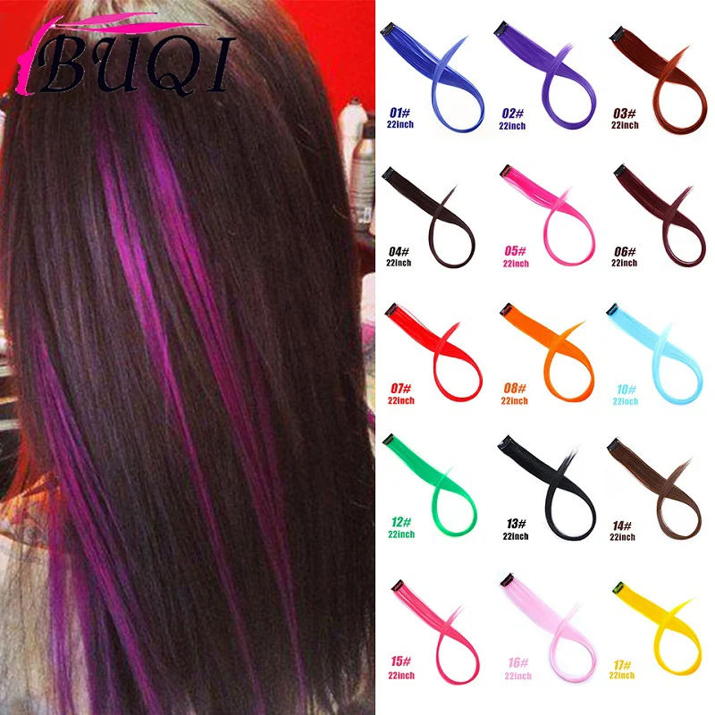 Buqi Straight Fake Colored Hair Extensions Clip Rainbow Hair Streak Synthetic Pink Orange White Purple Hair Strands On Clips Synthetic Clip In One Piece For White Aliexpress